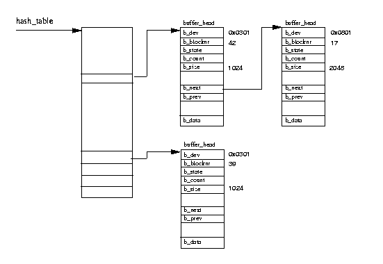 マウントされたファイルシステムが利用される場合、ファイルシステムはデータ ブロックを読み書きするためにブロックデバイスに対する多くのリクエストを行う。 データブロックの読み書きするためのリクエストはすべて、標準のカーネルルーチン の呼び出しを経由して、 buffer_head データ 構造体で定義されたデバイスドライバに渡される。 この構造体はブロックデバイスドライバに必要なすべての情報を提供する。 デバイス識別子は固有のデバイスを識別し、ブロック番号はドライバにどのブロックを 読み出すべきかを示す。すべてのブロックデバイスは、同一サイズのブロックの 線形的な集合であると見看される。物理ブロックデバイスへのアクセスをスピード アップするために、Linux はブロックバッファのキャッシュを管理する。 システム上の すべてのブロックバッファは、使用されていない新しいバッファでさえ、このバッファ キャッシュのどこかに保存される。このキャッシュはすべての物理ブロックデバイス 間で共有される。どのような時にもそのキャッシュには多くのブロックバッファが ある。それらはシステムのブロックデバイスのひとつに属していて、しばしば種々の 異なる状態( state)にある。 有効なデータがバッファキャッシュから入手可能な場合、 それによってシステムが物理デバイスにアクセスする手間が省かれる。ブロック デバイスに対する読み込みや書き出しで使用されたブロックバッファはすべて、 バッファキャッシュに入れられる。時間の経過によって、それらは、より必要性の高い バッファと交代するためにキャッシュから削除されるか、頻繁にアクセスされるため キャッシュに残るかする。