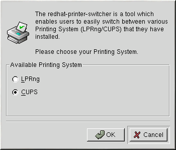 To use the CUPS printing system instead of LPRng, run the redhat-switch-printer application using one of the following methods: